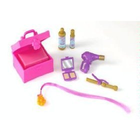 Enter the world of Barbie! These three stories of fabulousness include a pink personal elevator plus lights & sounds on every level! Enter through the front door to a warm and glowing light-up chandelier, dining area and fully-stocked kitchen. Entertain in the second-level living room with roaring fireplace and pop up flat screen TV, plus an ultra-luxurious Barbie signature bathroom. On the third floor is a posh bedroom suite with canopy bed and balcony with charming light-up tiki lights & outdoor whirlpool tub! Sounds include doorbell, kitchen timer, crackling fireplace, shower humming, and flushing toilet. (Doll not included.)