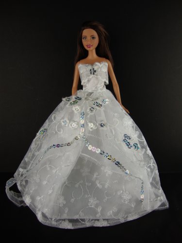 White Strapless Ball Gown with Lots of Silver Sequins Down the Skirt Made to Fit the Barbie Doll Reviews